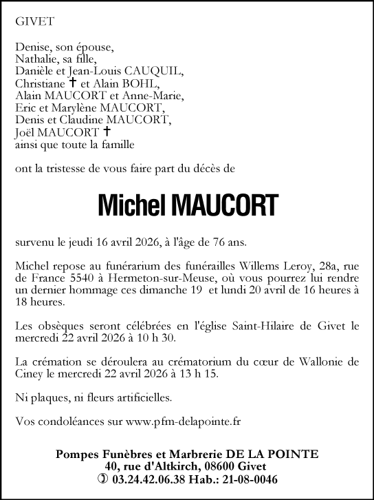 Crématorium de Ciney le mercredi 22 avril à 13 heures 15