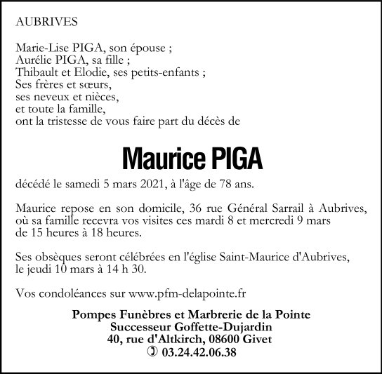 Décédé à Aubrives (08320, France) le samedi 5 mars 2022 à l'âge de 78 ans